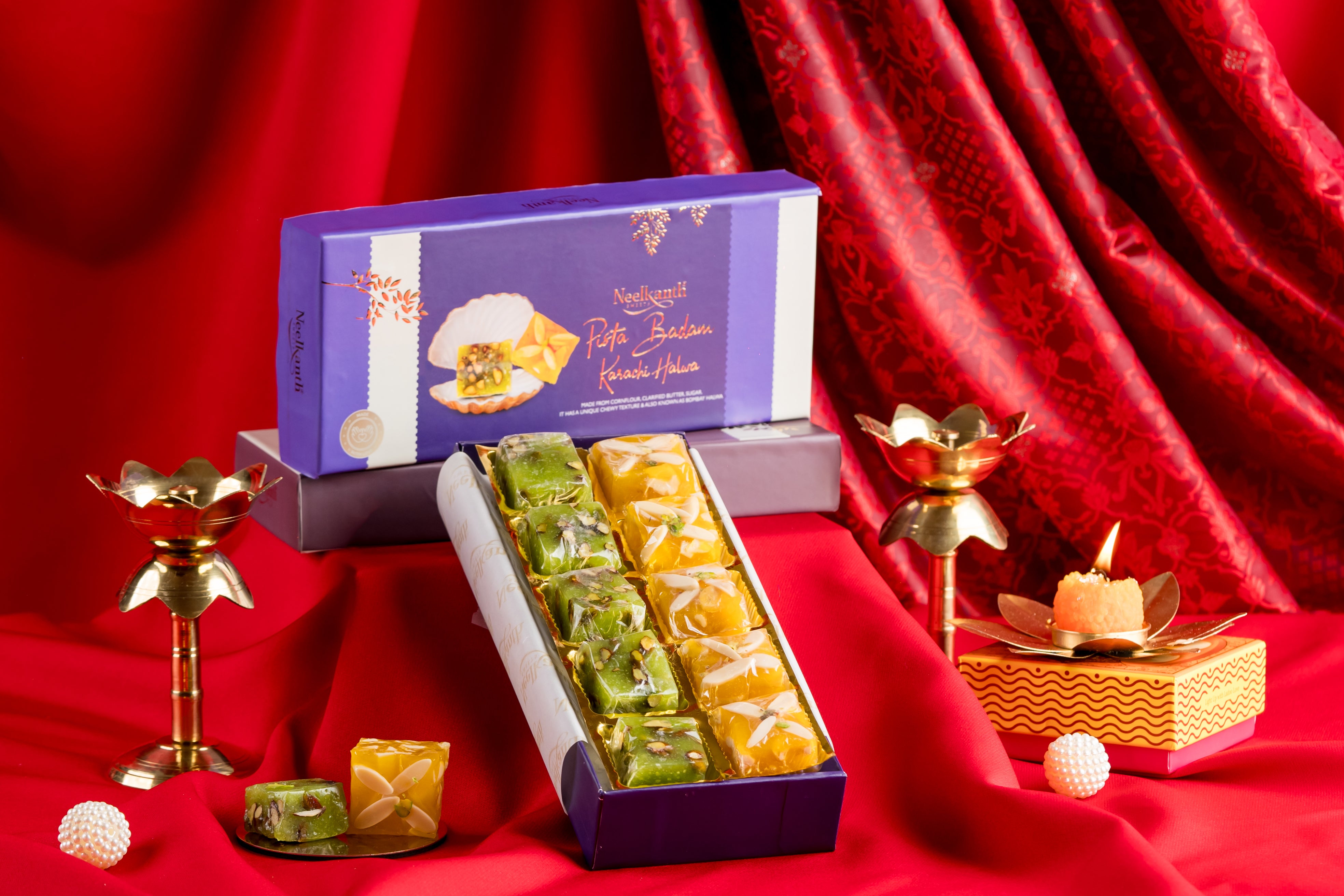 Assorted Karachi Halwa – Box of 10pcs Delight in the rich, traditional flavors of Karachi Halwa with this assorted box featuring two irresistible variants: Pista and Badam. Each box contains 10 pieces of soft, melt-in-your-mouth halwa, expertly crafted to bring the perfect balance of sweetness and nuttiness.